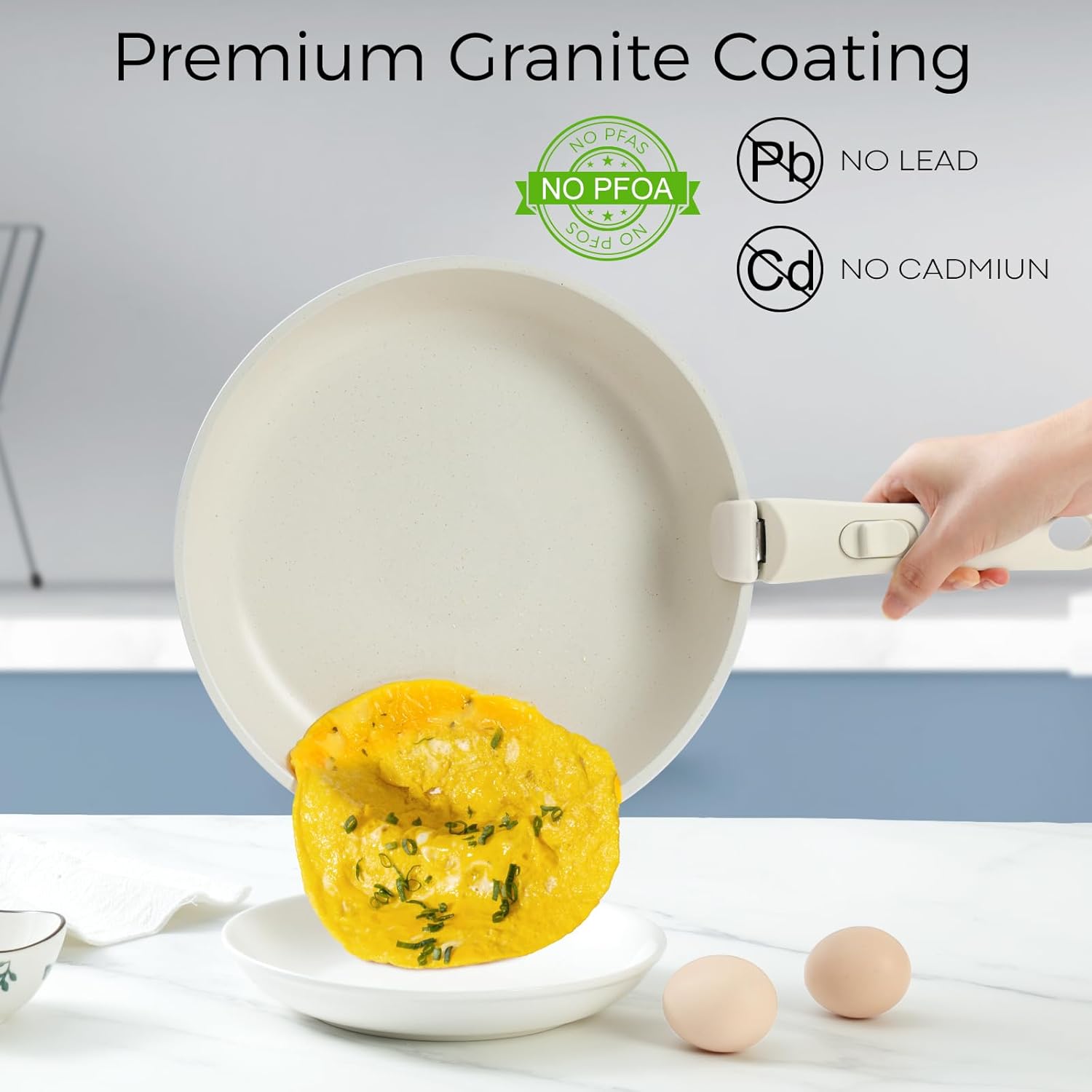 Bring a touch of vibrant utility to your cooking with this comprehensive kitchen essential. The clever detachable handle design allows you to nest your pans perfectly, clearing out clutter and maximizing your storage efficiency. Crafted with a premium non-stick granite finish, each piece helps you prepare healthier meals while ensuring that post-dinner cleanup is an absolute breeze.
